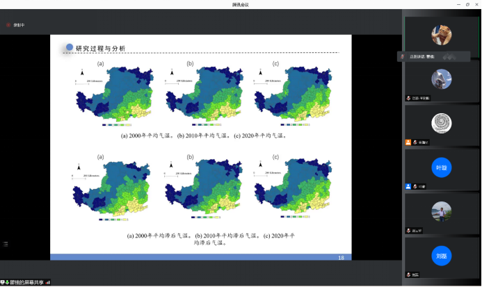 瞿植同学从人类活动与生态问题之间的关系开始,探讨人类活动对生态系统的压力以及所产生的效应,并阐述研究景观生态风险的必要性。通过分析黄土高原的景观生态风险指数(ERI)、人类足迹因子以及地理探测器模型,全面评估黄土高原景观生态风险指数(ERI)的时空分布格局,构建综合人类的足迹指数及气候变化因子,就黄土高原人类足迹与气候变化对景观生态风险指数(ERI)的影响进行探测,并展示其研究成果。