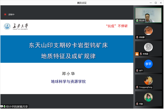 “长安学者”的邓小华教授和徐海教授做学术报告,邓小华教授报告题目为“东天山印支期矽卡岩型钨矿床地质特征及成矿规律”,徐海教授报告题目为“亚洲内陆干旱区全新世可能的水文气候模态及机制”,jojo漫画