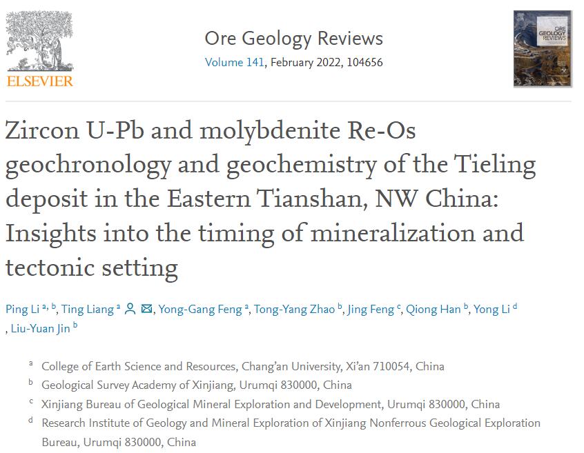 博士生李平(第一作者)、梁婷(通讯作者)、凤永刚等联合署名的论文“Zircon U-Pb and molybdenite Re-Os geochronology and geochemistry of the Tieling deposit in the Eastern Tianshan, NW China: Insights into the timing of mineralization and tectonic setting”荣获一等奖。该论文发表在国际权威地学期刊《Ore Geology Reviews》,影响因子3.714,属中科院JCR地学2区Top期刊。