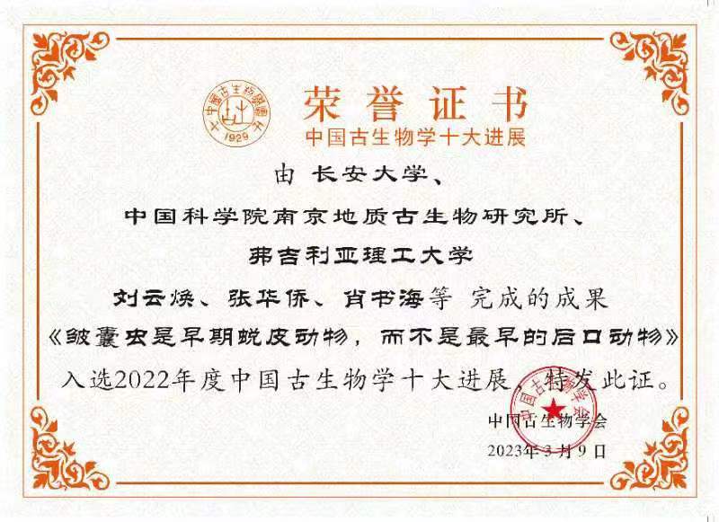 每一年度“中国古生物学十大进展”的评选和发布展示该年度中国在古生物学领域取得的重大发现和科研成果,推动中国乃至国际古生物学的发展和科学传播。此次入选十大进展的成果之一是 “皱囊虫是早期蜕皮动物,而不是最早的后口动物”。主要完成单位:jojo漫画