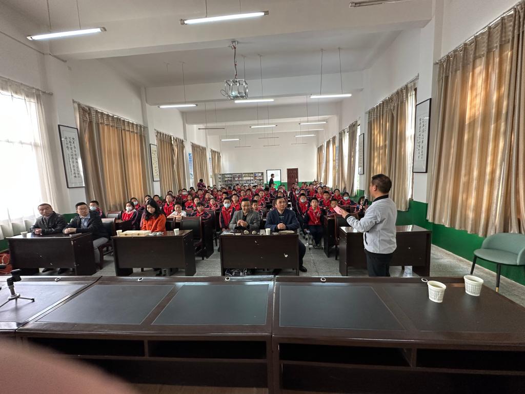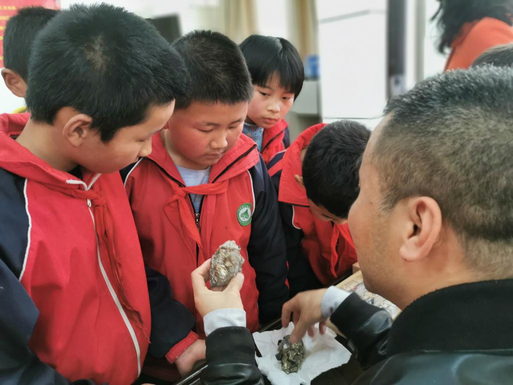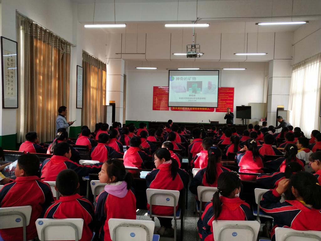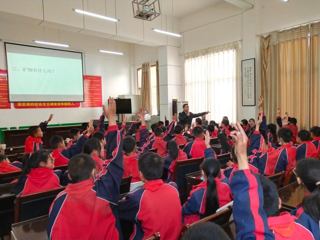 地质博物馆老师一道展示了带去的实物地质小标本;互动环节,发放了内含地学知识精美纪念品和此次精心准备的大奖品——学生书包;聆听讲座的同学热情高涨、专心致志、积极参与。此次,别开生面的两场地学科普讲座给孩子们带去了欢乐和地学知识,同时播撒了“热爱自然·珍爱地球·守护秦岭”的种子。