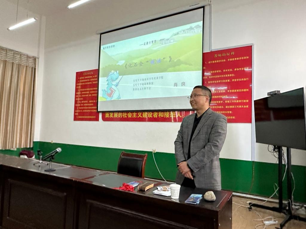 4月25日上午,经四个多小时车程,一行7人到达商南县十里坪镇九年制学校。在校长赵运山引导下,实地查看了学校基本校舍、图书室和地学科普讲座场地等。下午,肖良副教授和夏昭德副教授联合,给商南县十里坪镇九年制学校四年级、五年级和六年级三个班90多名同学,作了题为《化石会“说话”》《神奇的矿石》地学科普讲座。深入浅出地讲解化石背后的故事,一个个问题引领一个个有趣画面展开,使同学们了解了地球生命演化的过程,领悟了生命的奥妙;“神奇的矿物”不仅让同学们欣赏到了各式各类色彩斑斓的矿物,还讲解了这些矿物在国民经济建设和发展中的各类用途以及保护环境的重要性,开阔了同学们眼界并从小树立起“绿水青山就是金山银山”理念。讲座上,jojo漫画