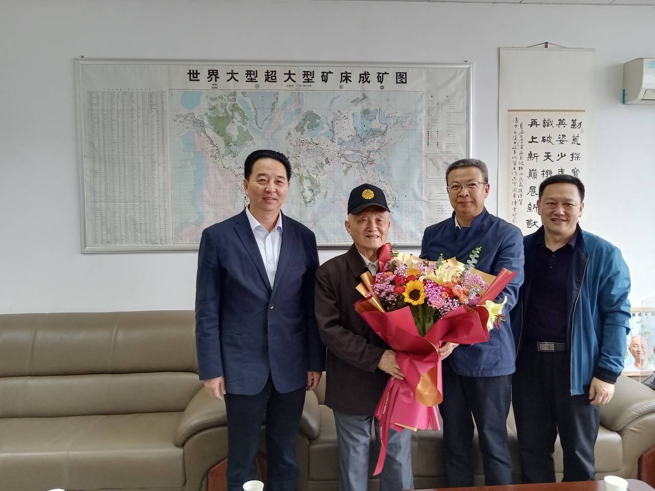 2023年5月9日下午,甘肃省地质矿产勘查开发局局长赵玲房一行来我校探望汤中立院士。在探望前,朱杰君副校长会见了赵玲房局长一行。