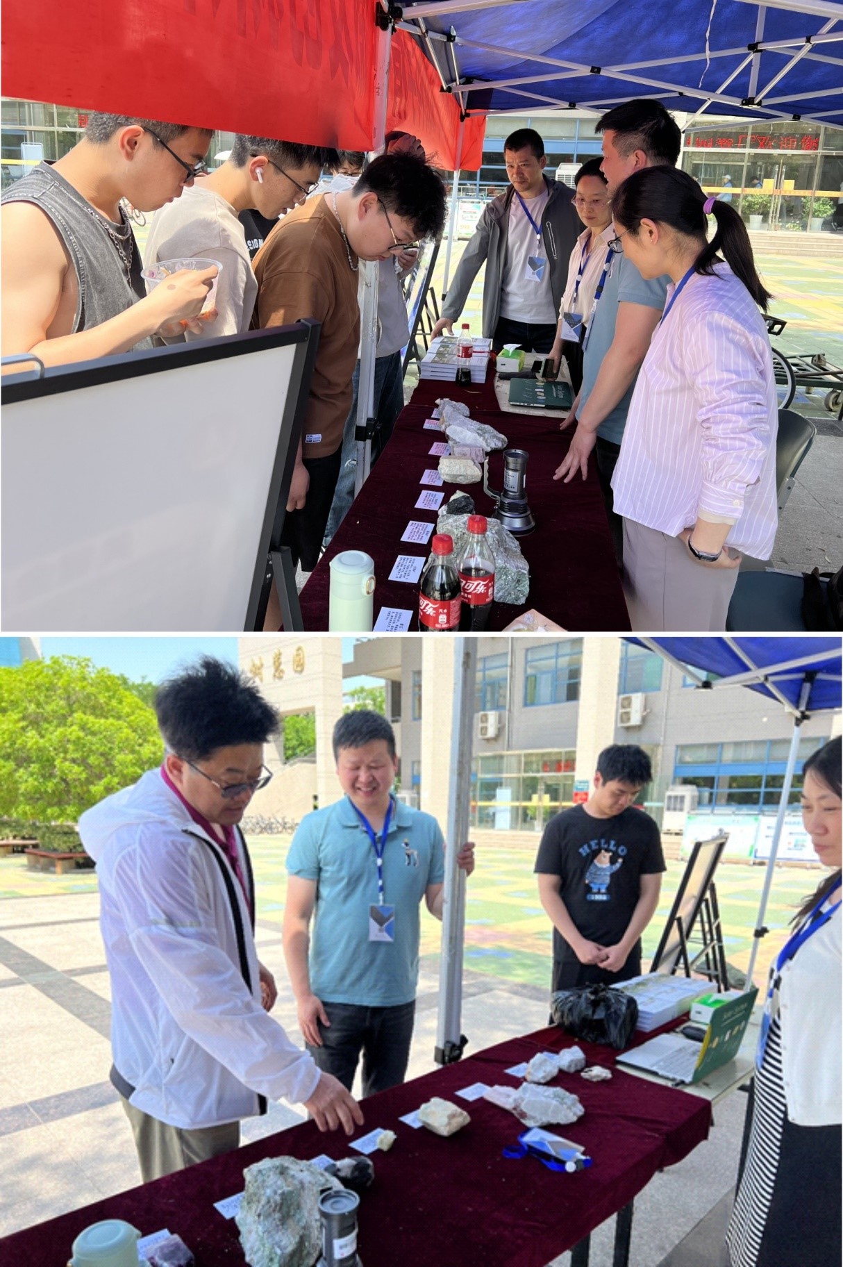 本次科普宣传活动通过布设稀有金属海报展板、关键金属矿物标本展示、播放科普视频、PPT多媒体演示以及现场答疑讲解的形式,向广大群众普及了关键金属的种类、获取途径以及发展前景。活动现场大众反响热烈,互动交流兴致高昂,达到了此次关键金属能源科普宣传效果。同时老师们通过分享自己的野外生活经历,向同学们展示了“地质人”“学习自然”的乐趣,打消了同学们对地质工作枯燥乏味的印象,增加了同学们对地质生活的兴趣和向往。