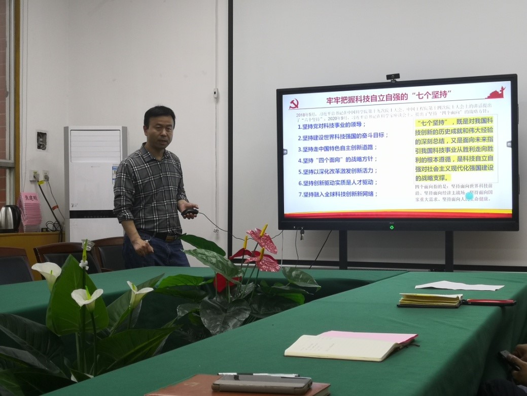 5月31日下午,焦建刚副院长以《需求驱动,科技创新,团结合作,科研强院》为题,在学院会议室为矿产石油党支部讲授主题教育专题党课。矿产石油党支部党员参加专题党课。专题党课由矿产石油党支部书记夏昭德主持。