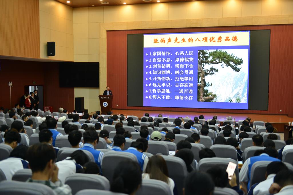表彰会上,中国科学院院士张国伟教授语重心长地对获奖同学说,学习张伯声精神,就是要刻苦努力,守正创新,勇攀高峰,为国奉献。西安石油大学校长李天太致辞。研究会副秘书长李佐臣教授作了“张伯声地壳波浪状镶嵌构造学说”报告、研究会副理事长李荣西教授作了“张伯声先生简历和优秀品德”报告、研究会副理事长兼秘书长杨兴科教授作了“张伯声基金章程和张伯声奖”报告。jojo漫画