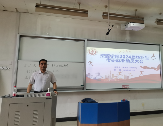 在修远4103教室召开2024届毕业生考研就业动员大会,大会由副院长李佐臣教授主讲, 2024届全体学生参加大会。会议由院团委书记巩昌盛主持。