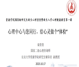 二楼伯声报告厅, 2023级研究生新生集中心理健康普查工作暨心理健康教育第一课-心理中心与您同行,给心灵做个“体检”如期进行。此次的心理测评由国家二级心理咨询师、副教授、jojo漫画