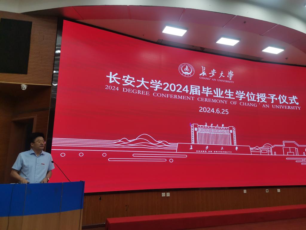 在北校区图书馆西侧裙楼报告厅隆重举行2024届毕业生学位授予仪式,院长温汉捷教授,导师代表钱壮志教授、杨兴科教授、裴先治教授,党委副书记武永江教授,副院长李佐臣教授、程宏飞教授,院办和学办老师,2024届毕业生,家长代表等参加学位授予仪式。仪式由学院党委书记黄喜锋主持。