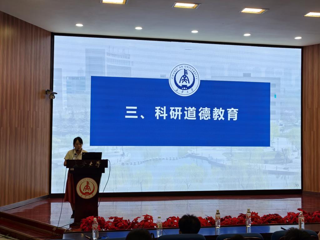 副书记许晨就“学风建设与科学道德教育”作报告,从研究生学风建设、科研道德教育和研究生与导师共同体关系三个大方面进行宣讲。副书记许晨强调,科学道德是社会道德在科学技术活动中的表现,是科研活动中科技工作者的道德规范、行为准则和应具备的道德素质,每一位科研工作者都应该敬畏科学、务实求真,传承优良学风、坚守学术诚信。她希望每一名研究生都要“扣好”科研道路上的第一颗纽扣,迈好学术生涯的第一步。