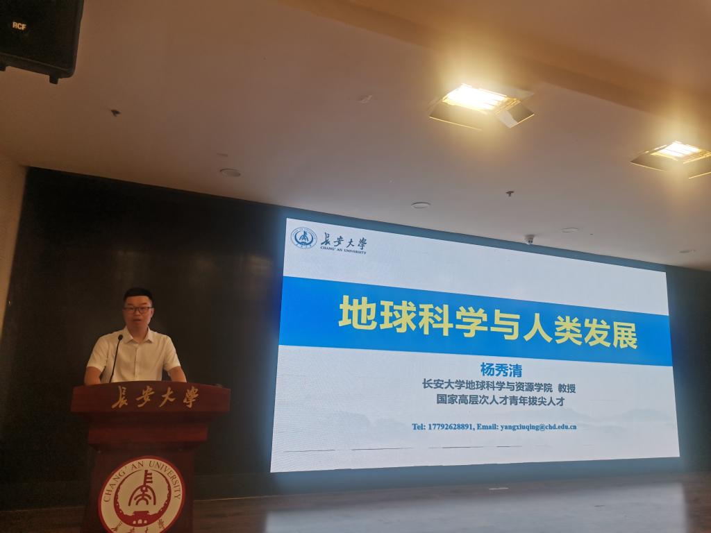 副院长杨秀清教授以“地球科学与人类发展”为题,从“什么是地球科学”“地球科学的贡献”“长大的地球科学”三个方面作了发言。