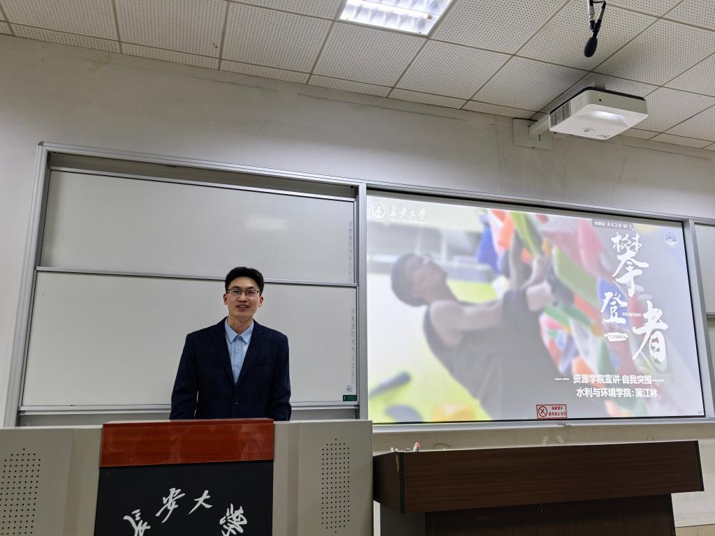 2021270101班的班长周超进行宣讲。他们分享了自己在大学期间的成长经历与取得的成绩,重点对学习方法提升、协调学习生活与学生工作时间、科创竞赛锻炼、先进班集体建设等方面介绍了自己的经验与体悟。