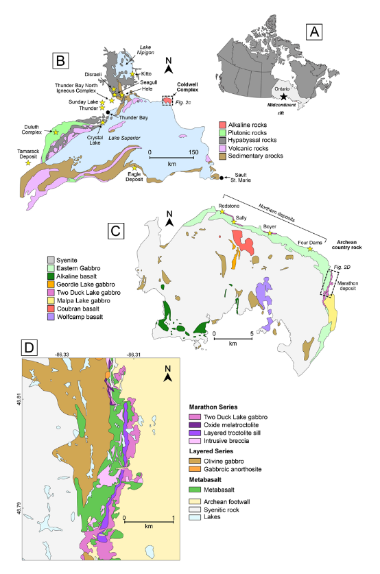 4月24日,我院Matthew J. Brzozowski(马修)教授领衔的科研团队在地学国际权威期刊《Economic Geology》上发表了题为《Sulfur Isotopes as a Record of Complex Sulfide Saturation Histories in Conduit-Type Ni-Cu-PGE Deposits: An Example from the Eastern Gabbro, Coldwell Complex, Canada》的研究论文,系统揭示了加拿大Coldwell杂岩体东部辉长岩系统中岩浆硫化物成矿的复杂机制。