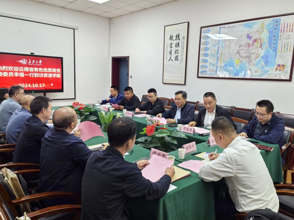 2024年10月17日上午,云南省有色地质局党委委员李福一行7人到访jojo漫画 ,jojo漫画 院长温汉捷、副院长李佐臣、副院长杨秀清矿床教学研究所所长张海东、邓小华教授和自然资源部新能源矿产与资源信息工程技术创新中心办公室主任张磊、研究生辅导员梁青青参加了座谈。座谈会由李佐臣副院长主持。