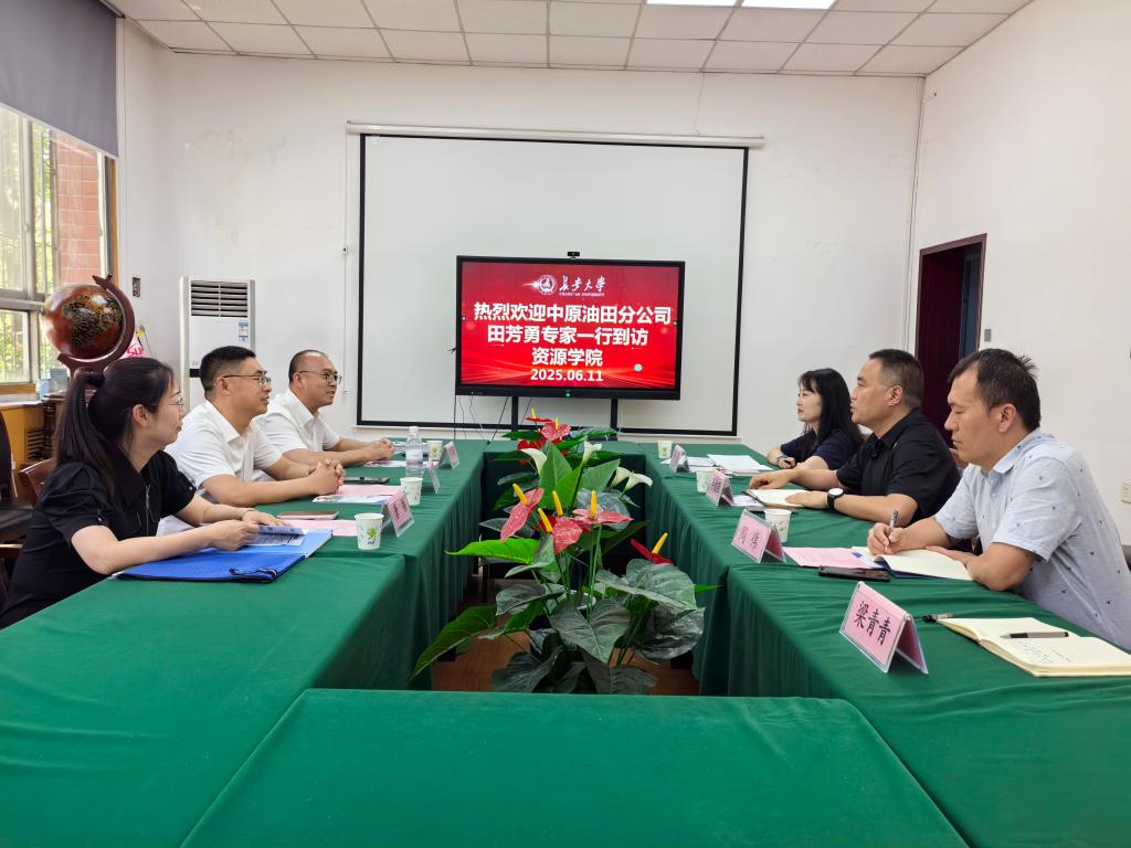 2025611日下午,中原油田分公司石油工程技术研究院仪表及自控专业油田专家田芳勇一行到访jojo漫画 ,开展校企合作交流座谈及博士人才招聘宣讲。中原油田分公司勘探开发研究院组织人事室主任董瑞峰、物探研究院科技生产室主任唐颖陪同访问。副院长李佐臣、党委副书记许晨、石油系教师周伟、博士生代表等参加座谈,双方就深化产学研合作、人才培养及科研攻关等议题展开深入交流。